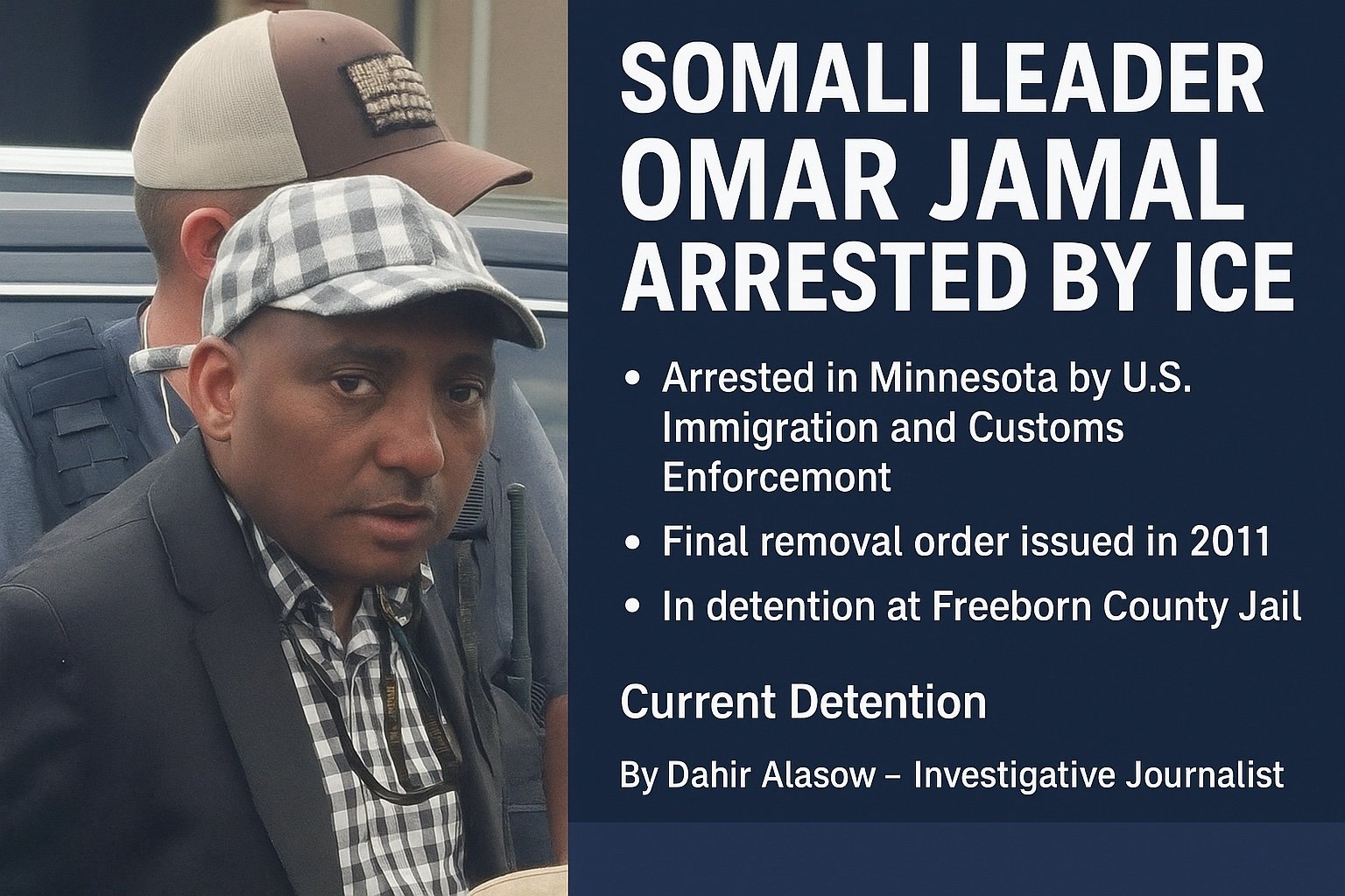 Sahan Media Muqdisho: Omar Jamaal, oo muddo dheer u ololeynayey bulshada Soomaalida, ahaana sarkaal ka tirsan shaqaalaha rayidka ah ee degmada Ramsey, ayaa ICE ku xidhay Minneapolis Agoosto 29, 2025.