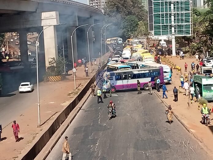 Baabuurta Adeegga Dadweynaha ayaa la dhigay hareeraha Waddada Waiyaki, kuwaas oo xannibay isu socodkii gadiidka iyaga oo mudaaharaadaya, isla markaana keenay in isu socodka Waddooyinka mashquulka ah ay istaagaan.