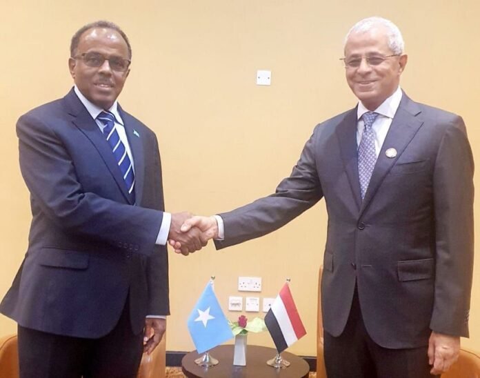 Sahan Media Muqdisho: Wasiir ku xigeenka Wasaaradda arrimaha dibadda iyo qurba-joogta ee dowladda Yaman Mudane Mostafa Noaman ayaa maanta oo Talaado ah la kulmay wasiiru-dowlaha arrimaha dibadda iyo iskaashiga caalamiga ah ee Soomaaliya, Mudane Cali Cumar, iyagoo ka wada hadlay xiriirka labada dal, horumarka labada dal iyo sidoo kale is-beddellada Geeska Afrika iyo badda cas.